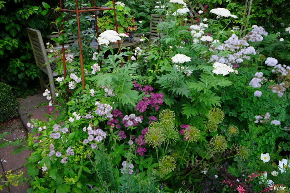 Oh, die Farbe der AstrantiaDu magst Recht haben - aber man sieht nur mit dem Gärtnerherzen gut...!@Frank, ich frage mich, was auf den gezeigten Fotos suboptimal ist...Wunderschön eingewachsen, reif, ausgewogen und ineinander verwobenIch weiß ja, dass man selbst im eigenen Garten mehr sieht als andere, weil man so seine Vorstellungen hat...Aber als Betrachter und Genießer Deiner Fotos kann ich nur sagen: perfekt. Ich habe das Gefühl, dass so ein bißchen Gewähren lassen Deinem Garten ganz gut tut