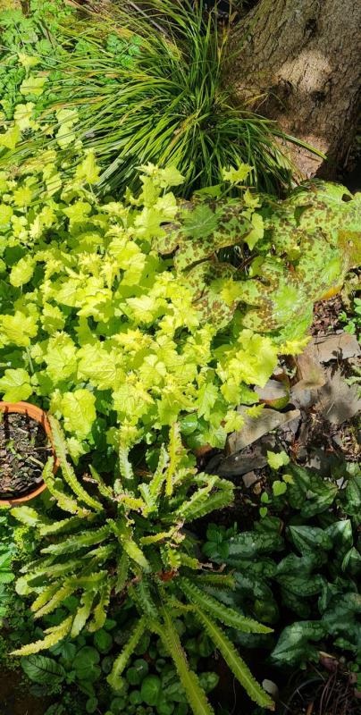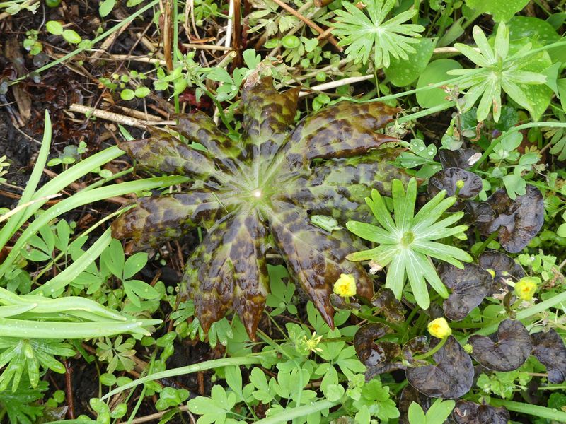 Mehr als wüchsig ist Podophyllum peltatum. Ich schiebe schon eine ganze Weile vor mir her, es mal einzudämmen. ::)