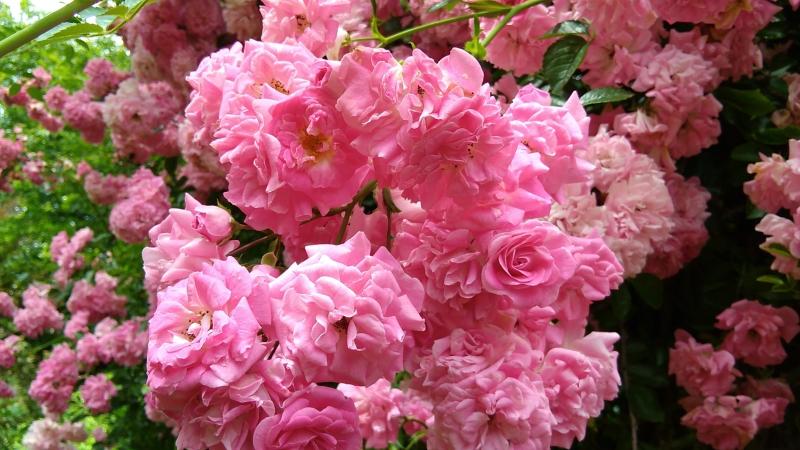 Diese no name Rose wuchert über einen abgesägtnen Schwarzerlenstamm. Mal schauen wer sich da durchsetzt.