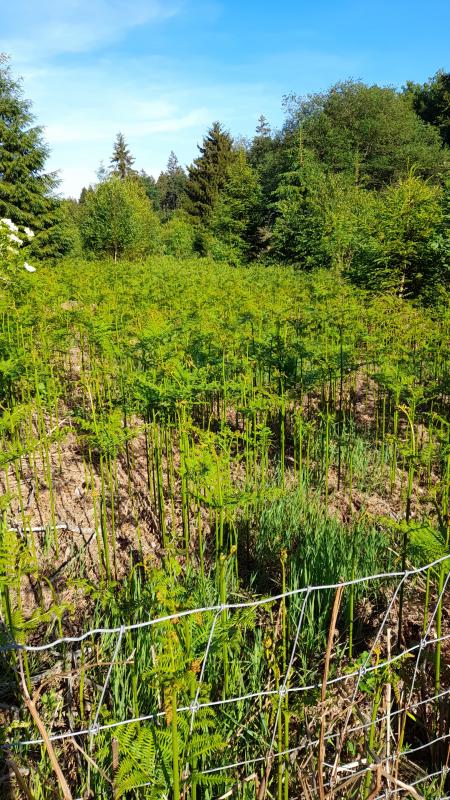 Farn ist ja leider ein Hauptthema. Wenn so die Nachbarfläche aussieht, weiß jeder, dass ich gegen Windmühlenflügel kämpfe