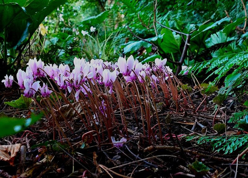Mit der Handykamera dicht über der Grasnarbe, am Hederifoliumblütenwald