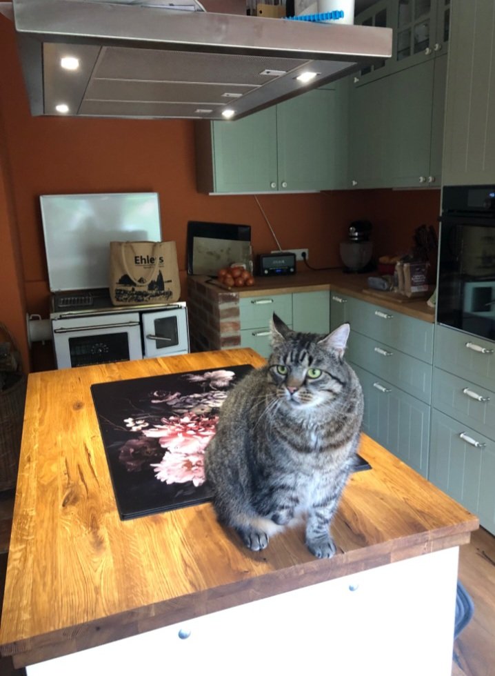 Ja blöd, ich konnte die Bilder nicht drehen. Nix heißer Popo, vor dem Kochen fliegt sie runter und zum Schutz liegt die Matte auf dem Kochfeld
