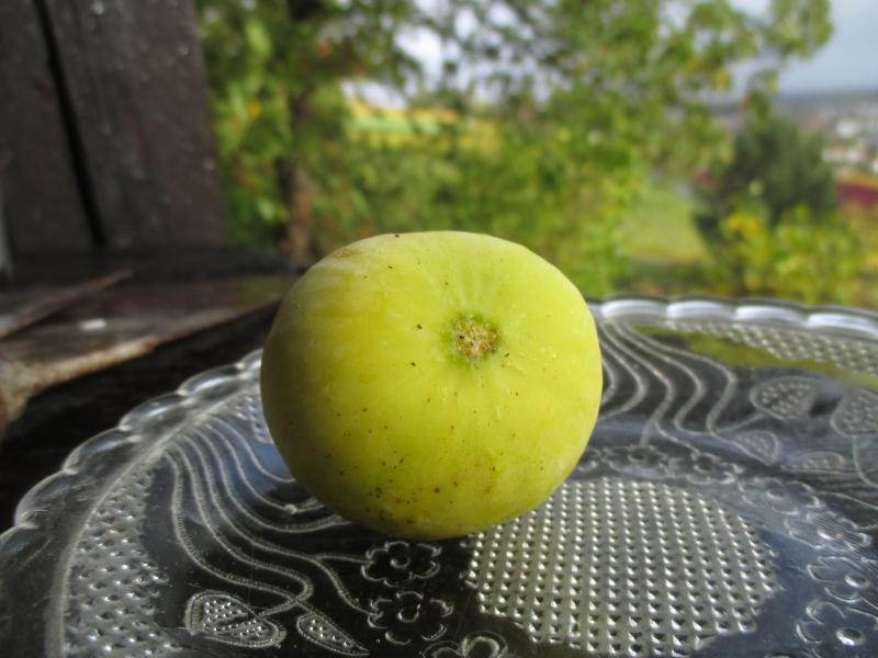 Die Früchte sind hellgelb. Das ist von großem Vorteil da die Vögel sie nicht anpicken so wie sie es bei meinen braunen Pfälzer Feigen tun.