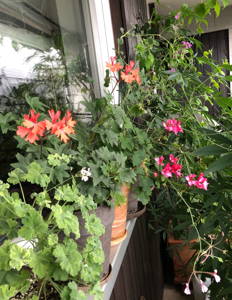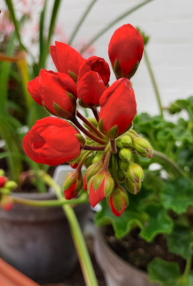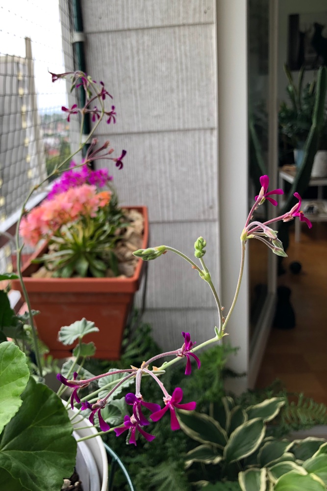 Schade, dass die neuen schwedischen Pelargonien keinen Regen vertragen und ich habe keine Möglichkeit, sie trocken unterzustellen. Viva Madeleine ändert jeden Tag die Farbe. Red Pimpernella ist elne "Tulpen" Pelargonie,vdie endlich nun üppiger blüht. In der Tat, wie kleine Tulpen!