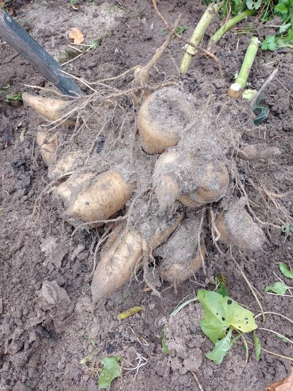 @Quendula Hast Du auch etwas zum Thema beizutragen oder bist Du nur zum lästern da? Ich finde sunrises Erntebilder herzerfrischend fröhlich und sie ist ja nicht auf allen Bildern mit drauf. Die Yacon Ernte die sie da hat kann sich absolut sehen lassen, bin schon neugierig was bei meiner Pflanze dieses Jahr unten dran ist. Die Erntemengen bei Yacon können mitunter beachtlich schwanken, gibt Jahre in denen man schon fast nicht mehr weiß wohin vor lauter Knollen und andere in denen man sich wünscht es wäre doch wenigstens ein Bisschen mehr dran. Keine Ahnung woran das genau liegt, den Pflanzen sieht man es bis zur Ernte nicht an wie viel sich unter der Erde verbirgt.
