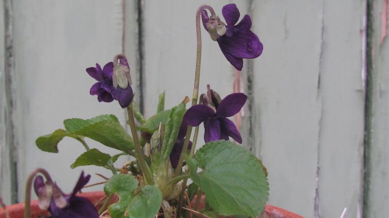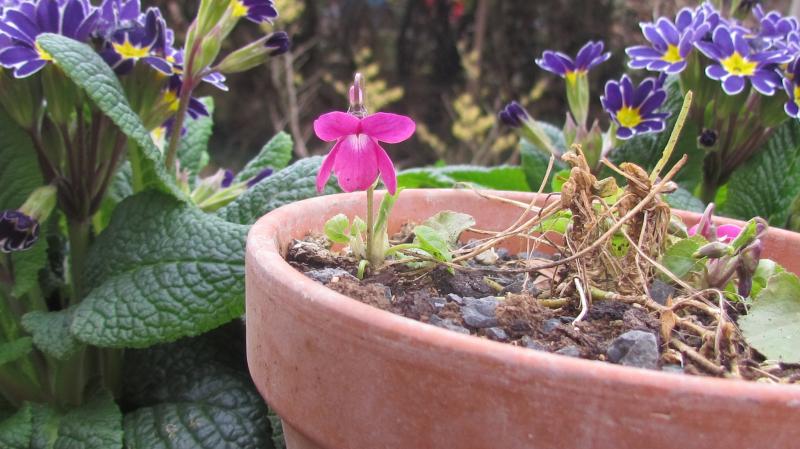 Bei ein paar Töpfen mit lilarosa Veilchen sind die Blüten irgendwie deformiert. Da sie alle fast gleich/sehr ähnlich aussehen und die betreffenden Sorten teilweise eigentlich anders blühen sollten, vermute ich einen Veilchentyp dahinter, dessen Blütenanlagen in sehr frühem Stadium sehr frostempfindlich sind. Hier `Orchid Pink´, das scheint zu stimmen.