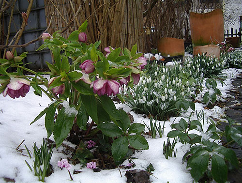 Und bei uns sind die Lenzrosen zum Glück erst wenig weit heraus. Lediglich eine H. dumetorum, eine H. thibetanus und eine frühe H.-multifidus-Hybride blühen und schlappen jetzt etwas traurig.