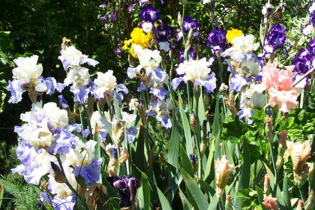Und zum Schluß mal kein Porträt, sondern ein Ausschnitt von meinem Irisbeet.Der mächte Blüher links ist Stairway to Heaven.
