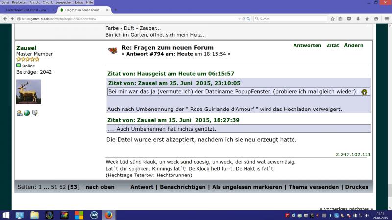 Auch nach Umbenennung der " Rose Guirlande d'Amour' " wird das Hochladen verweigert.Bei mir war das ja (vermute ich) der Dateiname PopupFenster. (probiere ich mal gleich wieder).