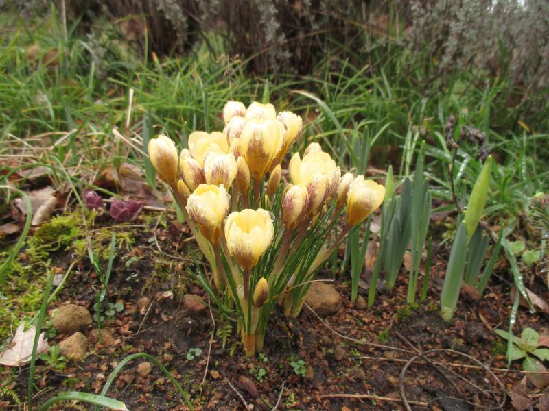 Die Schneeglöckchen vergehen bereits, dazwischen eine Iris. Habe ich die dahin gepflanzt? Nicht dass ich wüsste.