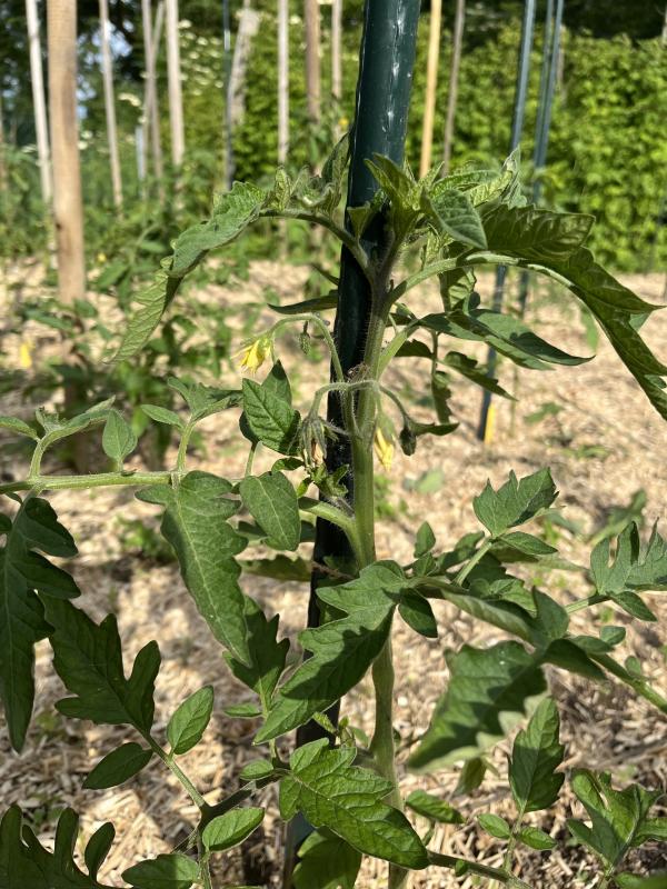 Meine Tomaten wachsen dieses Jahr auch etwas anders als sonst. Durchs frühe Auspflanzen haben einige Zwiesel (heißen diese Doppflspitzen bei Tomaten so?). Dunkelgrün und teils gedrungen sind sie auch, möglicherweise waren die Pferdeäpfel, die unter dem Grünschnittkompost sind, noch etwas zu frisch. Windig und sehr sonnig wars auch zwischendurch und dann immer wieder Regen. Die Tomaten haben das aber gut weg gesteckt, die Melonen, Gurken und Zuccini sehen aber mäkelig aus.