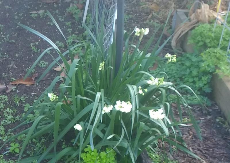 Das erste sind vermutlich Narzissen bzw. Tazetten. Vergleiche mal z. B. mit Bildern von "Paperwhite" (Narcissus papyraceus). ("Weihnachten" ist ja bei Euch gerade vorbei - das passt ;) ). Das zweite wirkt auf mich wie ein Salbei aus der Wish-Serie, z. B. 'Love and Wishes'. Mit Vorbehalt.