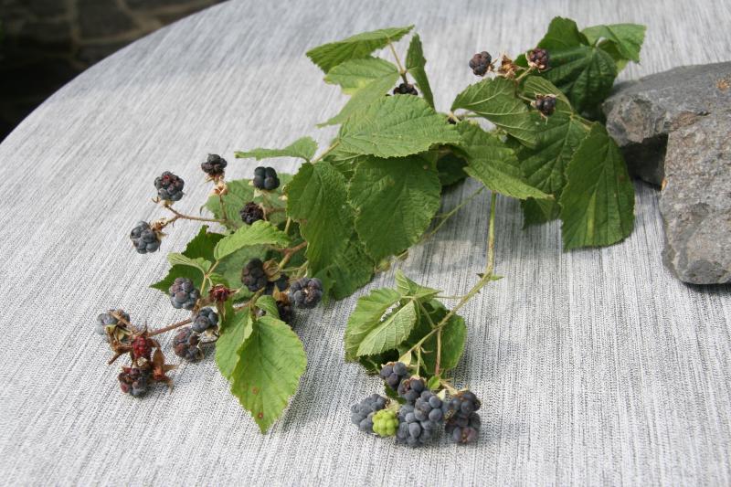 Wer kennt diese Pflanze. Sie kriecht am Boden wie eine Brombeere, ist auch so stachlich. Die Früchte sind so lilablau, bereift und schmecken sehr säuerlich. Danke schon mal im Voraus.