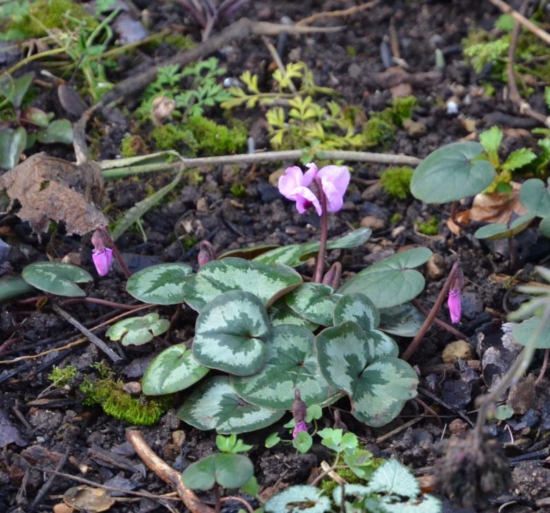 Hier blüht das erste C. coum seit Weihnachten :D Die Blüte in der Mitte stammt von dem C. pseudibericum dahinter, das blüht seit ca. zwei Wochen.