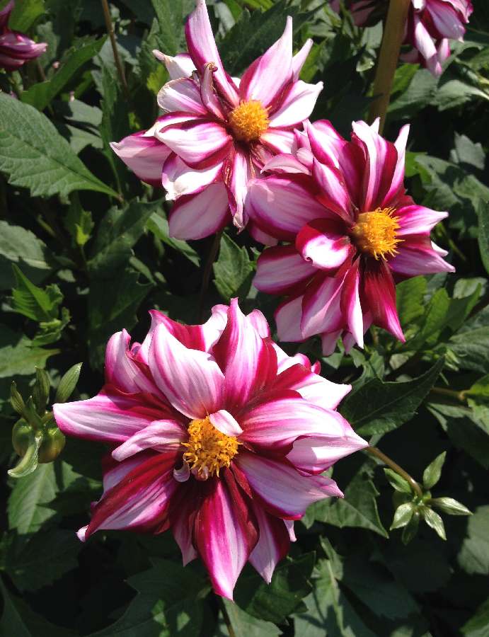 Ich habe mir in diesem Jahr 20 verschiedene Dahliensorten von der Gärtnerei Panzer aus Bad Köstritz geben lassen und freue mich an den bunten Schießbudenblumen.