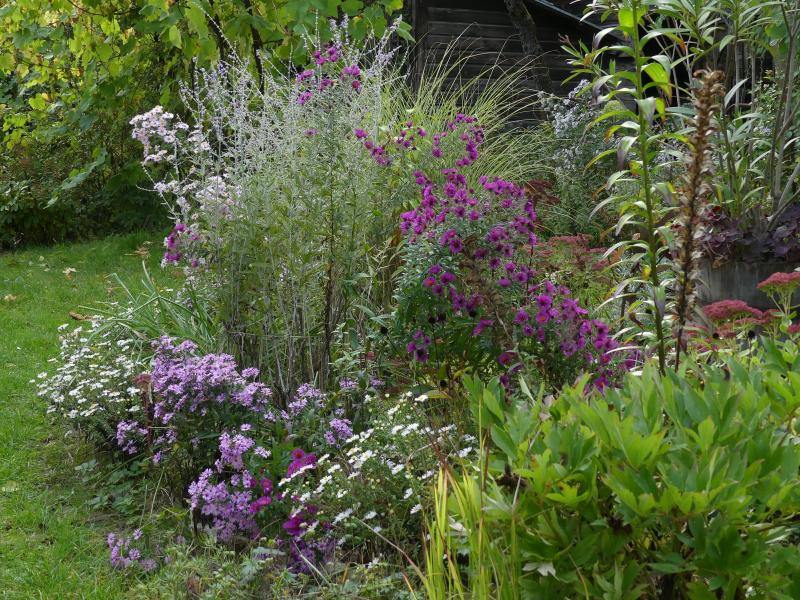 Aster ageratoides 'Ezo Murasaki', mein besonderer Liebling. Blüht sehr lange, kommt mit Trockenheit klar.
