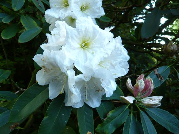 Rh.liliiflorum,zuerst auf der Guizhou-Expedition in den Achtzigern gesammelt ,ist eine große Überraschung bezüglich ihrer Winterhärte.Nachdem Cox berichtete sie sei in Glendoick völlig hart und sie mit H3-H4 bezeichnete,pflanzte ich die 1991 erworbene Pflanze vor drei Jahren auch aus und sie überstand zwischen Bambushorste gepflanzt auch den letzten Winter mit meheren Tagen -9,5 C ohne jeglichen Schaden.Habe deswegen eine weitere Pflanze mit einer anderen Sammlernummer schon reservieren lassen.Die Blüten duften stark und sind wirklich lilienförmig,was mich darüber hinwegtröstet,daß alle Lilien in meinen Garten trotz Schneckenkorn ratzeputze von den Schnecken vertilgt wurden.