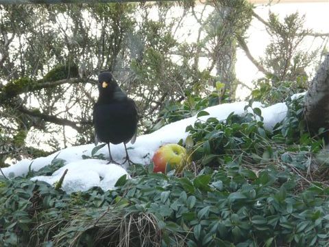 und sehe die Vögel auf der grünen Wiese nicht, oder aber alle haben sich exakt heute, am ersten Tag, an dem Schnee liegt, aus dem Wald aufgemacht, um hier die Futterstellen zu inspizieren (Mag auch am Futterhäuschen liegen, das unser Nachbar schon gestern aufgestellt hat). Auf jeden Fall hatte ich den Eindruck, dass sie alle noch wussten, wo es im letzten Winter was zu holen gab
