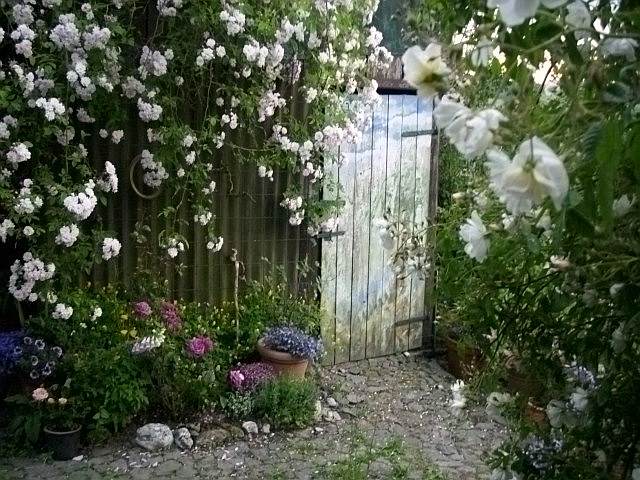 meine terrasse zur zeit:neben mir lykkefund und an der hütte paul´s himalayan musk, unten klein sabia und ´s heidi (klum).