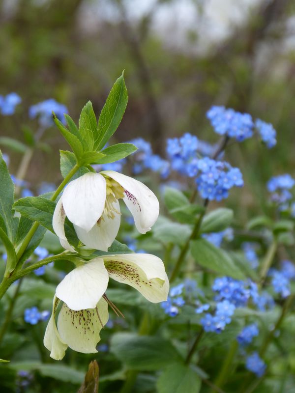 Zufallskombi - als ich die Helleborus vor die Brunnera pflanzte, wusste ich noch nicht, in welcher Farbe sie blühen wird. ;)