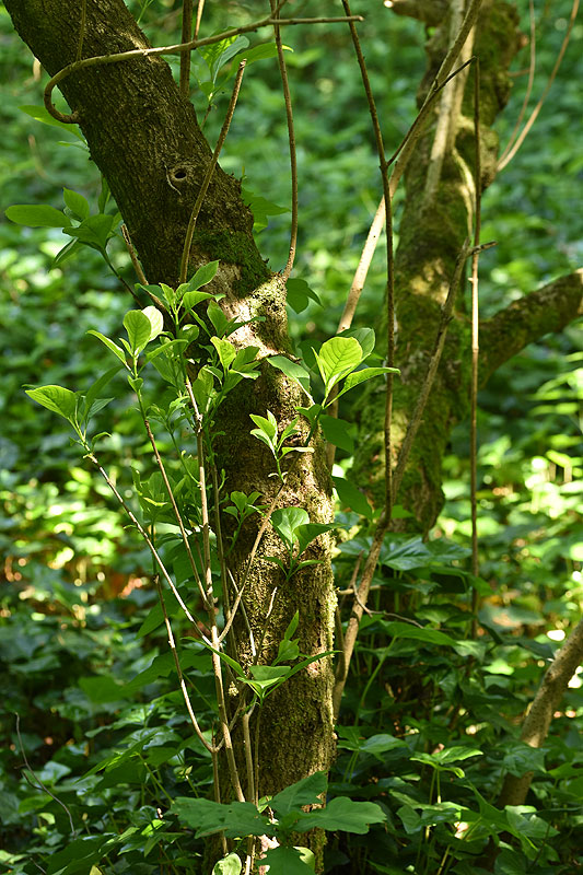 Im Prinzip ist Chionanthus virginicus zur Blüte schon auffällig, hier im Schatten einer großen Hängebuche kaum.