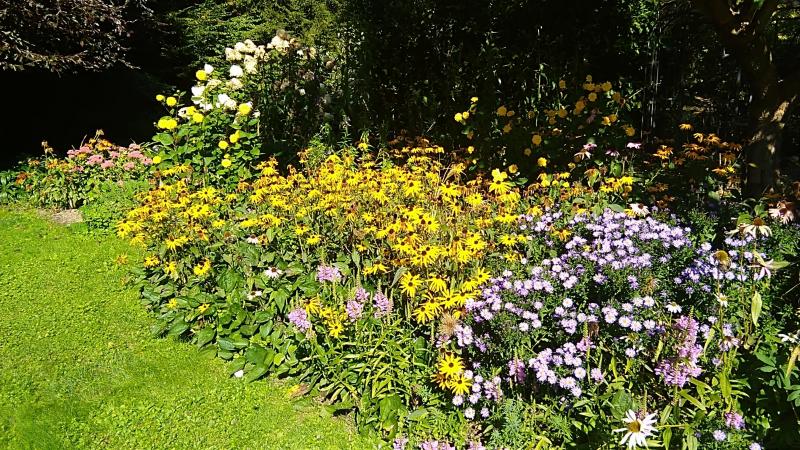Es war wieder sehr schön, durch Deinen Garten zu streifen. Mir gefällt besonders die Großzügigkeit, mit der er angelegt worden ist. Diese monochromen Flächen strahlen eine Ruhe aus, die ich sehr mag. Von den Wetterkapriolen in diesem Jahr ist nichts mehr zu merken. Hast Du eigentlich wieder neue Kunstwerke gestaltet?