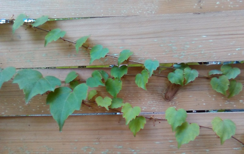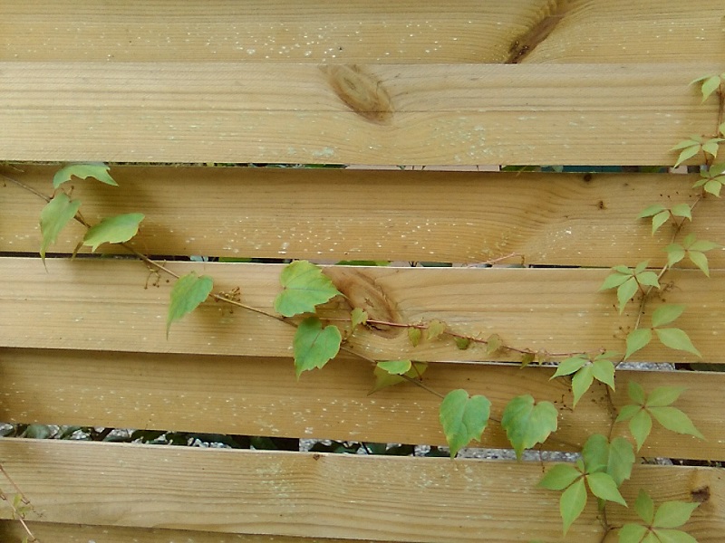(Ans Haus lassen wir die Pflänzchen nicht, aber diese Holzwand sollen sie schnell zumachen.)