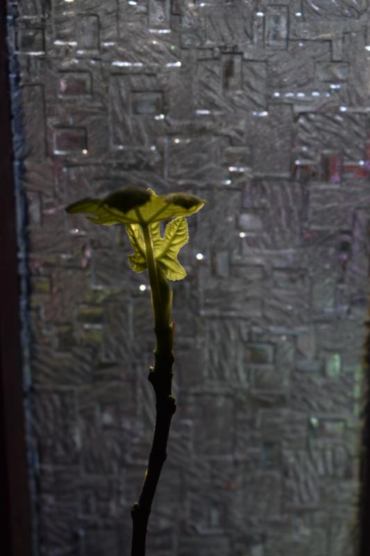 Eine Feige steht im ungeheizten Flur am Fenster bei ca 15 °C, die jetzt ausgetrieben hat.