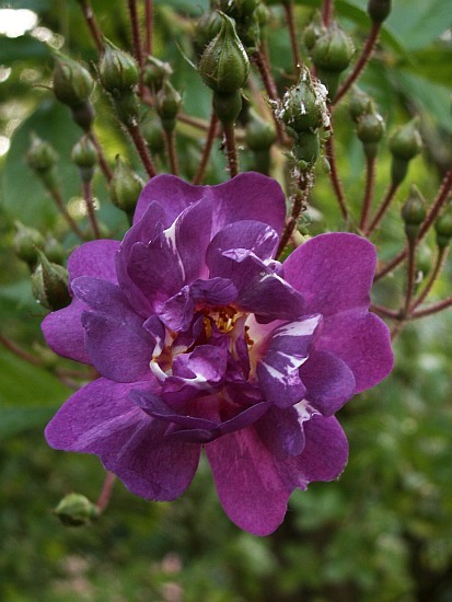 Heute habe ich die allererste Blüte (überhaupt) von R. 'Highdowniensis' in meinem Garten erlebt.Ich bin ganz hingerissen von dem intensiven Rosa. Und wenn ich erst nachher an die tollen flaschenförmigen Hagebutten denke...