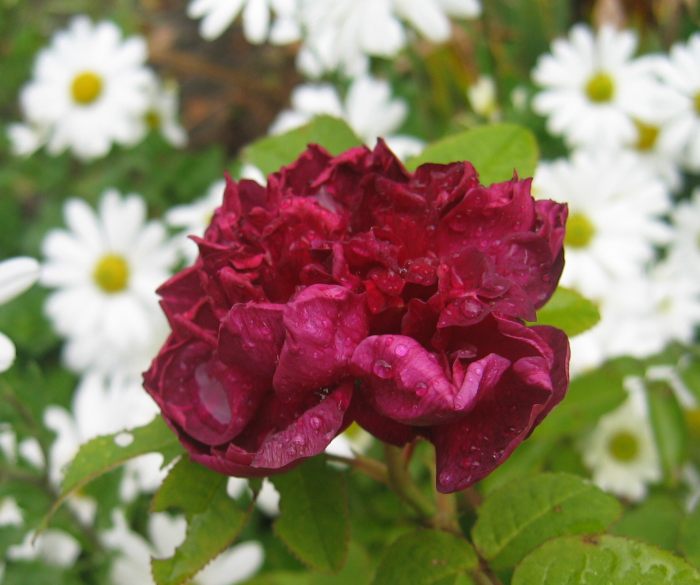 . Beates Geburtstagsrose, die immer noch blüht trotz eiskalter Nächte und gelegentlich Regen