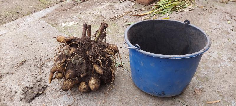 Jetzt habe ich das Foto gefunden von der Topfyakon. Von einer Pflanze aus der kleinen Topf (maurerkübel) ... ;)