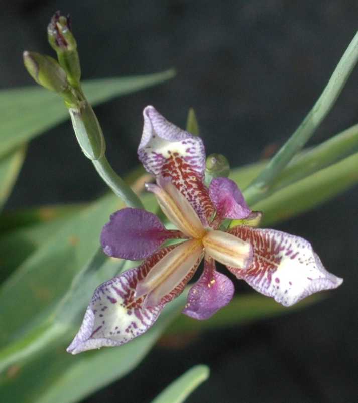 die nennt sich m.w. immer noch iris dichotoma (syn. pardanthopsis). das lange leben hat diese iris offenbar nicht. der winter kann m.e. nicht das problem sein, wenn man die herkunft bedenkt...sibirien, mongolei, china, korea. die blüte hält nur kurz, da aber ständig neue blüten öffnen fällt das gar nicht so auf. jedenfalls eine sehr schöne iris. der samen keimt leicht + zahlreich. habe noch einen sämlingstopf mit bestimmt 40 großen sämlingen rumstehen, die mich täglich auffordern sie nun doch endlich mal auszupflanzen.