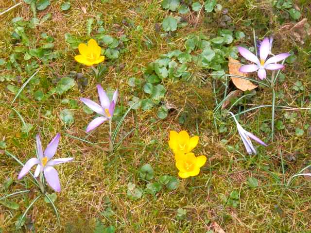 Bei mir gehören sie nicht zu den ersten, sondern zu den letzten Krokussen: C. gargaricus zwischen C. tommasinianus 'Roseus':