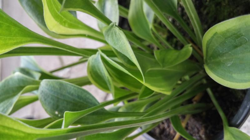 'Baby Bunting' verhält sich hier auch etwas anspruchsvoll, löwenmäulchen. Bisher hat sie sich im schattigen Bereich am besten etabliert. Sie steht auch nicht gerne zu trocken, während man nach anderen Minis oft gar nicht schauen braucht. Die größeren Hosta-Töpfe habe ich schon vor einigen Wochen, als die Temperaturen mehrfach über 35 Grad erreichten, unter allen möglichen Sträuchern und Hortensien verteilt, damit sie keinen Sonnenbrand bekommen. Nach Möglichkeit erhielten sie dort einmal wöchentlich ein Tauchbad in einem großen Zinkeimer. Viel mehr kann man ja nicht tun. Aber sie erholen sich auch alle wieder, eigentlich sind die meisten Sorten sehr robust.