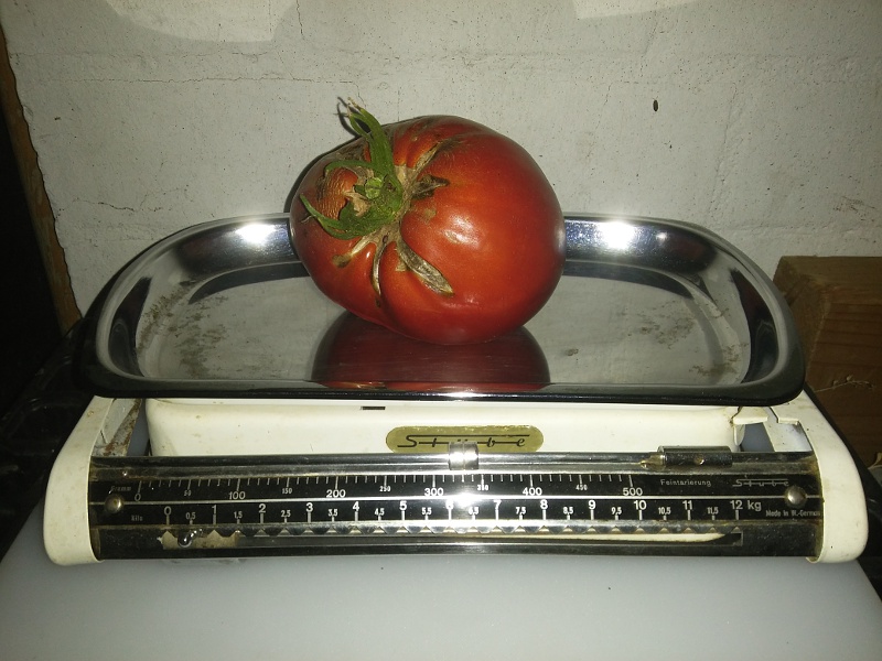 Meine schwerste Tomate war gestern ein bulgarisches Ochsenherz mit 278g, aber da hängen noch paar rum und an der German Gold sind auch noch welche. Stört es eigentlich die Reifung der Früchte, wenn die nächtlichen Temperaturen auf durchschnittlich 7° runtergehen?