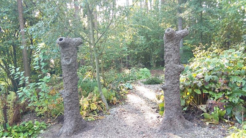 Es wurden Baumstämme aus Hypertufa. Die Aststumpen werden im Frühjahr mit Farne und die Wurzeln mit Moos bepflanzt.