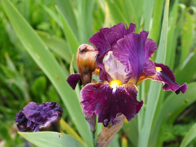 Ich bevorzuge Intermedia Iris (halbhohe), die fallen bei Wind nicht um und haben trotzdem sehr schöne Blüten.