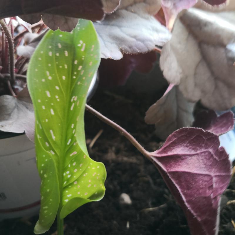 Ist das Blatt gesprenkelt? Es gibt Zantedeschia-Hybriden mit solchem Laub.