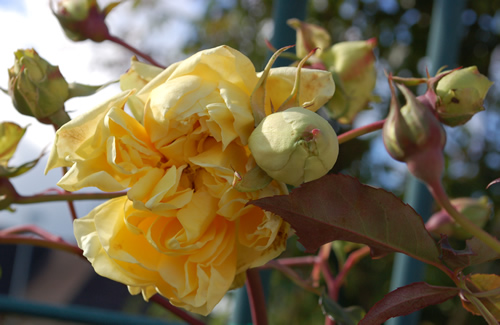 Prächtig, wie das auch noch bei Dir so blüht! Ein goldener Herbst voller Rosenblüten!Die Park sollte eigentlich 200 cm sein, mittlerweile befindet sie sich zwischen 400 cm und 500 cm Höhe! Was solls, Platz hat sie ja.Kai Eric: Die Augusta Louise hält sich so ziemlich genau an ihre Höhe von 100 cm seit 5 Jahren. Oder was meinst Du mit schiessen, ins Kraut oder in Blüten. Da wirst Du auch zufrieden sein, die blüht an einem fort.Die Auerstädt hat sich in einem halben Jahr schon ganz schön gemausert. Ob aber diese Blüten noch alle aufgehen?