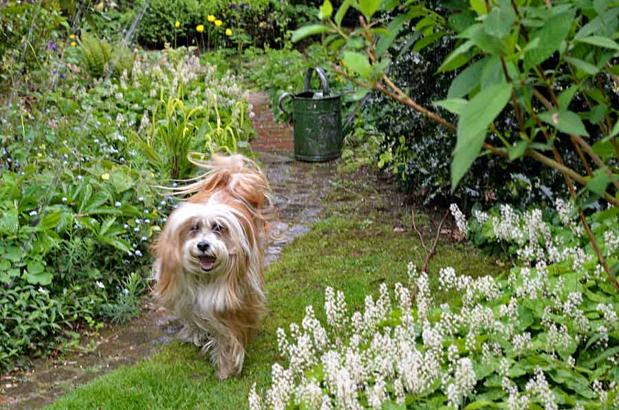 Leider ziemlich verwackelt, ich konnte die Kamera nicht schnell genug klar bekommen, als Shiva durch den Regen lief