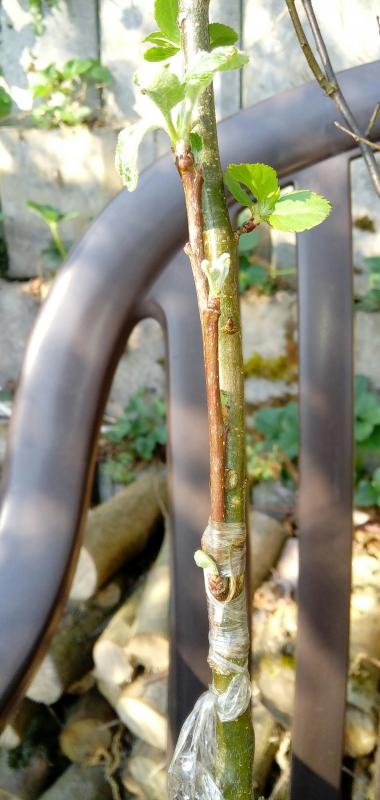Meine wenigen diesjährigen Veredelungen treiben nun langsam aus, hoffentlich wachsen sie auch gut an.