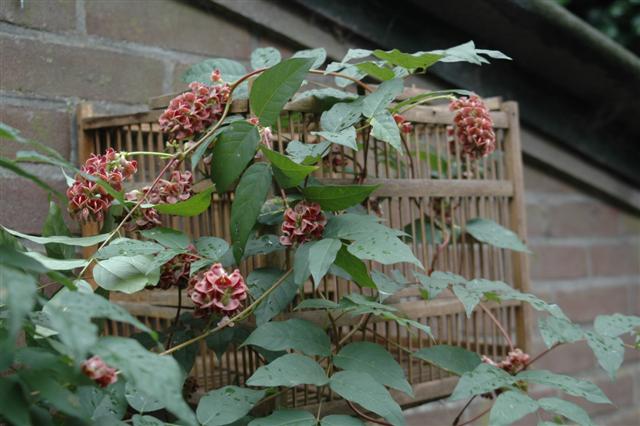 wow! Das sieht ja wirklich sensationell aus!Apios americana, erobert jedes Jahr das Dach des Geräteschuppens. Nun schlingt sie sich durch einen Vogelkäfig.