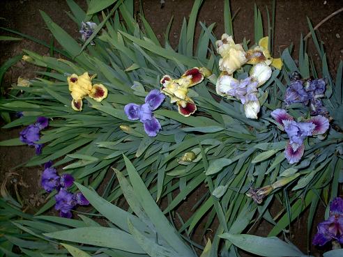Larrikin 2002 Blyth blauviolette Plicata mit blauem BartGipsy Eyes 1980 Wadekamper könnte die sein, die noch nicht ganz aufgeblüht ist blauviolette Plicata mit weißem BartBuster 2003 Blyth braunviolette Plicata mit gelbem Schein und blauem Bart
