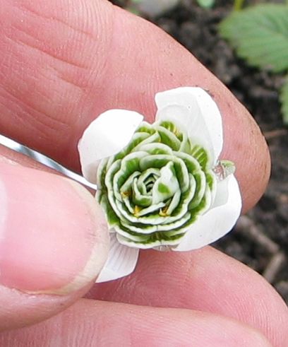 Jo Ich war gerade bei meinem Freund Charly der versucht den Schimmel mit Holzasche einzudämmen. Bei allen betroffenen Horsten sind immer ein paar die unbeeindruckt dastehen. Im Schnitt so ein bis zwei Dutzend.Meine gefüllte Sorte bei ihm (mehr als ich jetzt habe) hat keinerlei Befall.Ich habe jetzt mal die Hybriden von unten fotografiert. Der Vierständer ist vom Fruchtknoten(ohne ihn) bis zum stark gekrümmten Blütenblattende (geschlossen weil es so kalt ist) 24 mm lang, das Dreiblättrige 22 mm. Die werden sicher noch größer, da sie ja erst aufgeblüht sind.