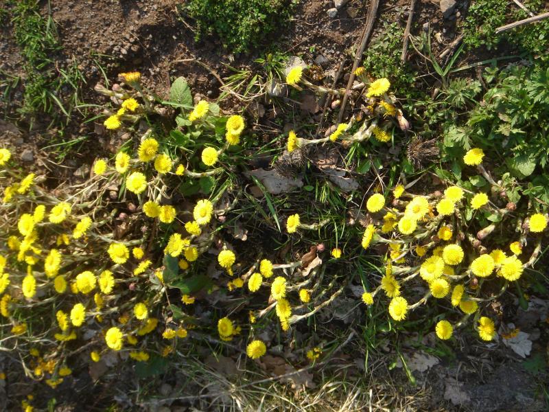Diese Hufflattichgruppe sah ich bei einem Spaziergang durch einen nahen Forst.