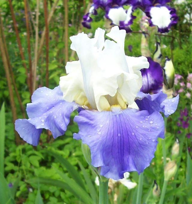Nana habe ich keine "schwarze", bei den Medias habe ich mit `Helen Proctor´ gute Erfahrungen gemacht.Meine schwärzeste Elatior ist `Before The Storm´, allerdings ist sie bei mir am Anfang immer sehr frohwüchsig, um dann auch wieder nachzulassen, ich habe sie mehrmals fast verloren, weil ich auf das Verpflanzen gerade keine Lust hatte. Anderseits ist sie es aber auch wert, dass man sich um sie kümmert! Besser ausdauernd ist hier `Old Black Magic´, ich finde aber, dass sie nicht dieselbe farbliche Brillanz hat.Sehr gut wachsend ist `Superstition´, sie ist aber eher "sehr dunkel" und nicht "nahezu schwarz". Neu habe ich `Anvill of Darkness´ welche eine etwas dunklere `Before the Storm´ sein soll, bisher wächst sie recht gut und will dieses Jahr endlich mal blühen.Eine sehr schöne und sehr gut wachsende "schwarzblaue" Sorte ist außerdem `Dusky Challenger´, sie blüht erst demnächst, weswegen ich jetzt kein Bild habe. Dafür einen eventuellen Kontrast, `Song of Norway´, Luhin, 1977, man meint den Eiswind schon zu spüren...was es hier von Euch an Iris zu sehen gibt, grossartig!Ich beginne ja gerade erst, Iris für mich zu entdecken...welche der ganz dunklen/(fast) schwarzen IB, BB bzw. TB Sorten sind denn besonders gesund und wüchsig?