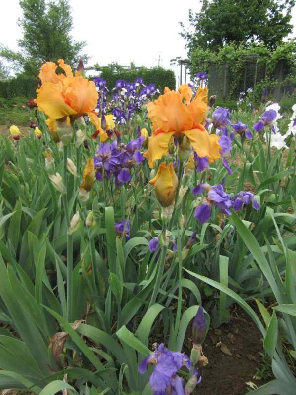 `Feu du Ciel´, Cayeux, 1993, die Orangefarbene! Leider kommt der Farbton auf dem Bild etwas hell rüber. Für diese Farbe ausgesprochen frohwüchsig und sehr gut ausdauernd, ich fürchte den Sämling der sich bei ihr eingenistet hat wieder herauszubekommen artet in Arbeit aus...Hat irgendjemand zufällig diese Sorte und noch `Skyfire´ von Schreiner (1980)? Meine Schulfremdsprachenkenntnisse legen Namensgleichheit nahe, ob es wohl auch dieselbe Sorte ist?