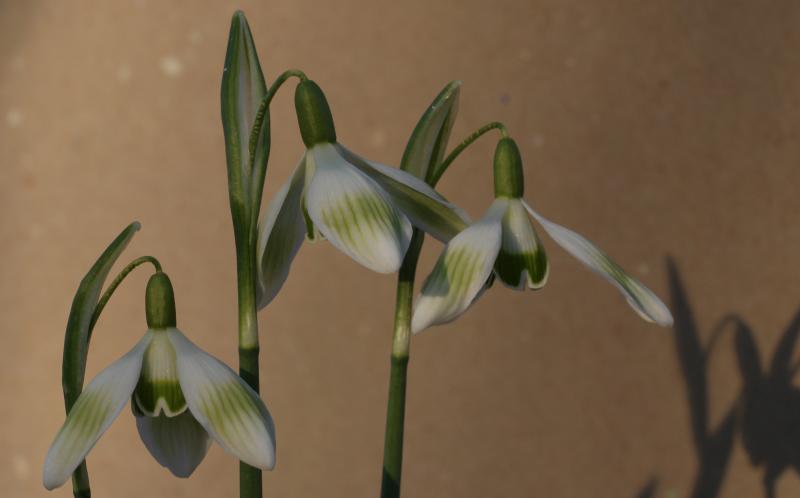 ja Irm, meine Galanthus stehen so um die 0°C, trotzdem hat es in den kalten Nächten frisch gekeimte Sämlinge erwischt. Die kommen mir im kommenden Jahr in die warme Stube (bis 5°C)heute gabs Sonnenschein, da öffneten endlich mal wieder ein paar Blüten, hier MOYA'S GREEN