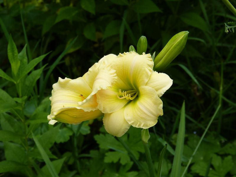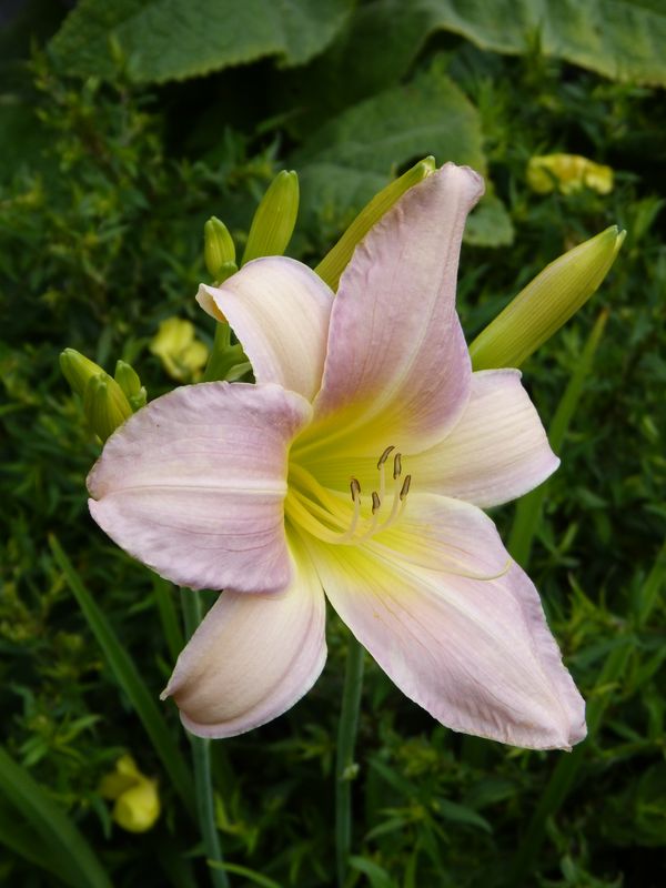 Die hübsche Maggie haben wir auch schon seit ca. 10 Jahren im Garten. Die Blütenblätter erinnern an glänzenden Satin und heben sich sehr schön von dem leuchtend grünen Schlund ab. Außerdem zeigt sie sich hier wüchsig und robust.warum ich einfach von Taglilien nicht lassen kann ...