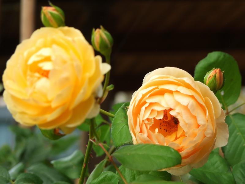 'Jude the Obscure' steht bei mir etwas geschützt im Hofbeet.Eine der Austinsorten auf die ich nicht verzichten würde.Mir gefällt eigentlich alles an ihr.Duft, die kugelige,offene Form ,das gesunde Laub und die Farbe von kupfrig-orange bis hin zu fahlgelb.